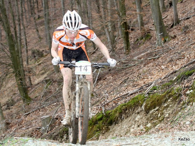 Másnap reggel jött az első verseny előtti idegeskedés, megint megcsúsztam a melegítéssel, így csak 10 perc jutott rá, viszont elég volt, mert nagyon szép időnk volt, simán rövidben tudtam menni. Jóval kevesebben jöttek el idén a versenyre, mint tavaly, most ~100 bringás indult el a 31 vagy 62 km-es távon. Pontban 11-kor kezdődött meg nekem és Fanninak az idei versenyszezon. Jól tudtam eljönni a rajtból, rögtön próbáltam az elejére vergődni, de többen is összeakadtak előttem. Kicsit meglepődtem milyen könnyen fel tudtam újra zárkózni az élre. Számomra minden tökéletesen alakult a verseny azon pontjáig, amíg el nem kezdtünk dagonyázni. Itt aztán kijött az ügyetlenségem, mindig megtaláltam a legmélyebb mocsarakat, egyikben sikerült úgy megcsúsznom, hogy fennakadtam egy kerítésen. Itt már eléggé hátracsúsztam, vagy húszan lehettek előttem. Emelkedős részeken mindig tudtam valamennyit hozni az élbolyon, amit aztán a mocsarakban egyből el is adtam. Első kör végére már egyedül mentem, de itt még egész jól éreztem magam, forogtam a lábaim. Ki is szemeltem egy embert kb. 1 percre magam előtt, akihez tudtam is közelíteni a síkon. Csak aztán megint jött a saras rész, ami a melegnek köszönhetően gyorsan száradt, pont annyira, hogy ami eddig simán átfolyt a gumi és a váz között, az most szépen megállt és folyamatosan eltömődött miatta a kerék. Sajnos csak 2.2 széles gumim volt, így az első villánál kb 2 cm volt a sárférőhely. Mindez mellett fáradni is kezdtem, plusz a hátam is beállt, a karjaimról nem is beszélve. Ez van, ha az ember országúton készül fel a montis szezonra… Valahogy azért végigszenvedtem a pályán, a 10. helyen értem be végül. Fanni rövidtávon ment végig, ő is megszenvedte a sarat. Én kicsit el voltam keseredve, de majd most hétvégén szépítek az Irottkő Hillclimbon! Találkozzunk ott, talán már száraz lesz a pálya!