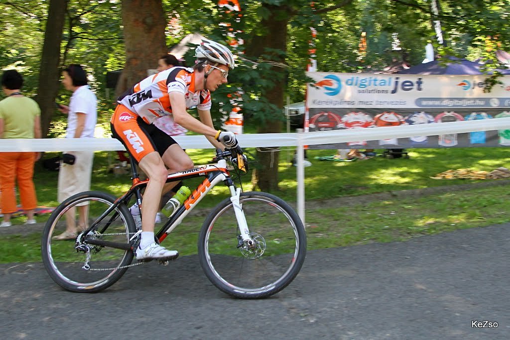 2012. június 16, 23:11Nem szoktunk hozzá, hogy Nagykovácsiban ilyen jó legyen a pálya, de most sikerült dagonyázós sár nélkül teljesíteni a kiírást! A hét elején még voltak nagyobb záporok, de ez is csak jót tett a nyomvonalnak és legalább nem porolt… Reggel Viktorral és párjával Krisztivel érkeztünk a helyszínre. Összeraktuk a gépeket, frissítést megbeszéltük, ki-hol-mikor, aztán némi csapatbandázás után már be is álltunk a rajthoz a jó kis 30 fokos melegben. A beszólítás sorrendjét itt mindig máshogyan csinálják, eddig sem értettem, de ezután sem fogom, azt hiszem… Lassú rajt után elindult elöl a helyezkedés, majd az első jobbos után elkezdődött a mászóka. Gergővel oda-vissza kerülgettük egymást, közben pulzus az égben, de úgy tűnik, bírom. Lefelékben még nagy a torlódás, túl sokat fékeznek előttem, nem igazán élvezem. Próbálok mindig első lenni a lejtők tetején, néha sikerül, de felfelé megint hátba csapnak a lehagyott pilóták…ez van, ha vki fullyval nyomja…