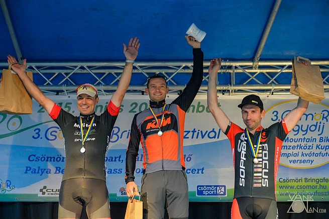 Utolsó murvás emelkedő, hátranézek, jön valaki, de nem tudtam ki az, nyomom tovább, nehogy felérjen. Utolsó letörés, utolsó meredek fal, kitekerem és sprint a célig. Hátranézek és nem Peti volt, hanem Kovács István, aki szintén M2-es volt…Peti utána jött ötödikként, én pedig 3. lettem!!!