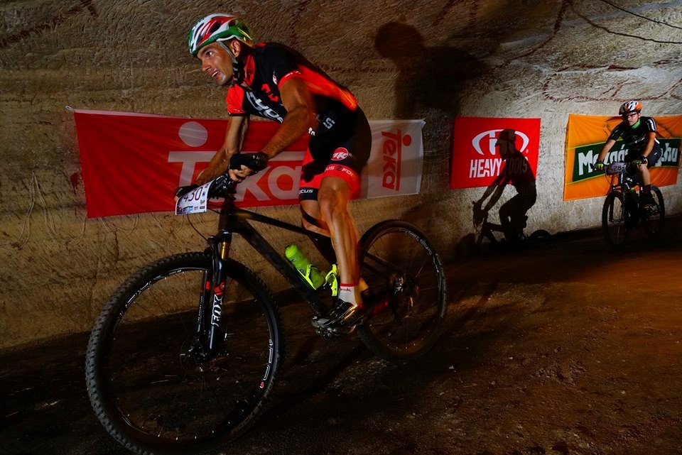 Néhány kör után befejeztem az edzést, és kezdtem készülni a segítő szerepére. Itatással, időméréssel és szurkolással telt a délelőtt. Az idő közeledett a futamom rajtjához és sajnos szomorúan kellett tudomásul vennem, hogy Búzsó nem jön el a versenyre, pedig milyen jó is lett volna vele egyet meccselni… Sebaj, vannak itt olyanok, akikkel együtt tudok menni, mint Dina Marci is. A 13:30-as rajtom előtt a szokásoknak megfelelően cselekedtem, kulacsok betöltése Nutrixxion isoval, zselék a zsebbe és már menetem is a bemelegítésre. Kellő sprintekkel és megindulásokkal a lábaimat, keringésemet készre „szerkesztettem”, majd nyújtással egybekötve vártam a startpisztoly dörrenését. Rajt után Dina Marcival el is szakadtunk a többiektől, egymást kergetve haladtunk 2-3 kört, majd kicsit megrántottam a felfelében, amit gyakoroltam a pályabejárás során. Így kialakult némi különbség köztünk. Aztán kicsit elfáradt, mert ő már a második versenyét futotta, így egyedül maradtam az idővel és a körszámokkal. Az utolsó fél órában velük versenyeztem és próbáltam minél jobb köridőket menni, hogy megdöntsem a tavalyi 15 körös versenytávot. Nem lassultam, legalábbis nem érezem magamon, hogy romlana a teljesítményem, így sikerült megcsinálnom a kitűzött célokat. A kategóriámat sikerül megnyerni és a legjobb köridőt is magaménak tudhatom. Beérkezés után rögtön a levezetést kezdtem, mert másnap a zirci maratonon szerettem volna egy jót teljesíteni. Bátran kijelenhetem, hogy nagyon szeretem ezt a fajta versenyszámot, mert a teljes táv alatt koncentrálni kell az akadályok miatt, próbálni megtartani a lendületet a kanyarokban és minél kevesebb energiát pazarolni a kigyorsításokban. A verseny és a szervezés is nagyon jól sikerült, remélem további rajongókat vonz majd a földalatti kerékpározás. Mindenkinek sok kilométert a lábba!